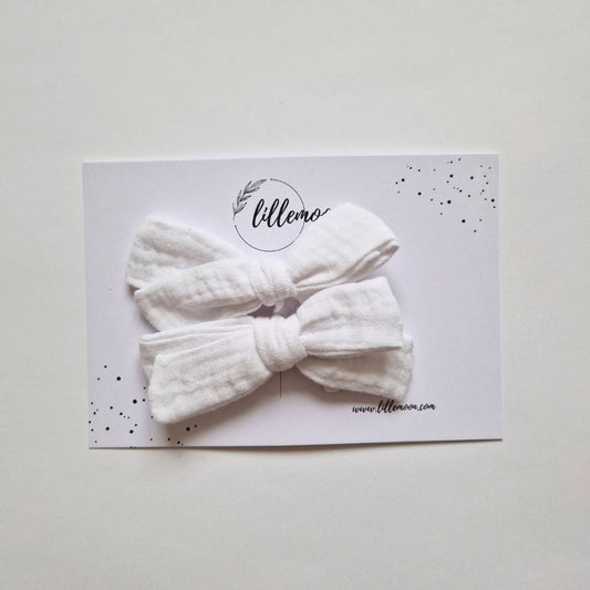 Divu vidēja izmēra muslina bantīšu komplekts - baltas
