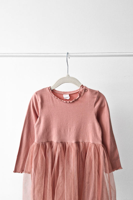 Pre-Loved H&M Rozā kleita ar tilla svārku daļu | 92 izm.
