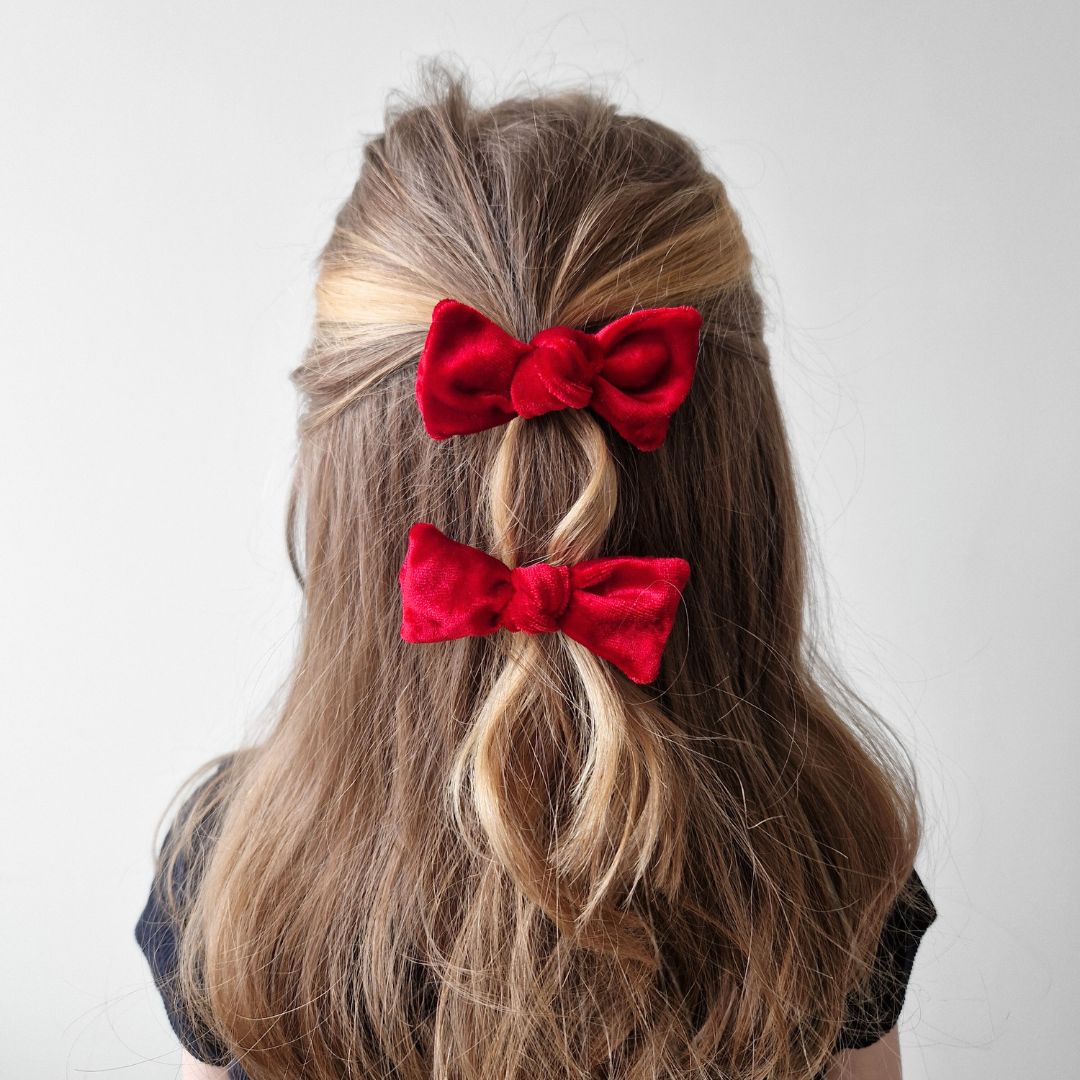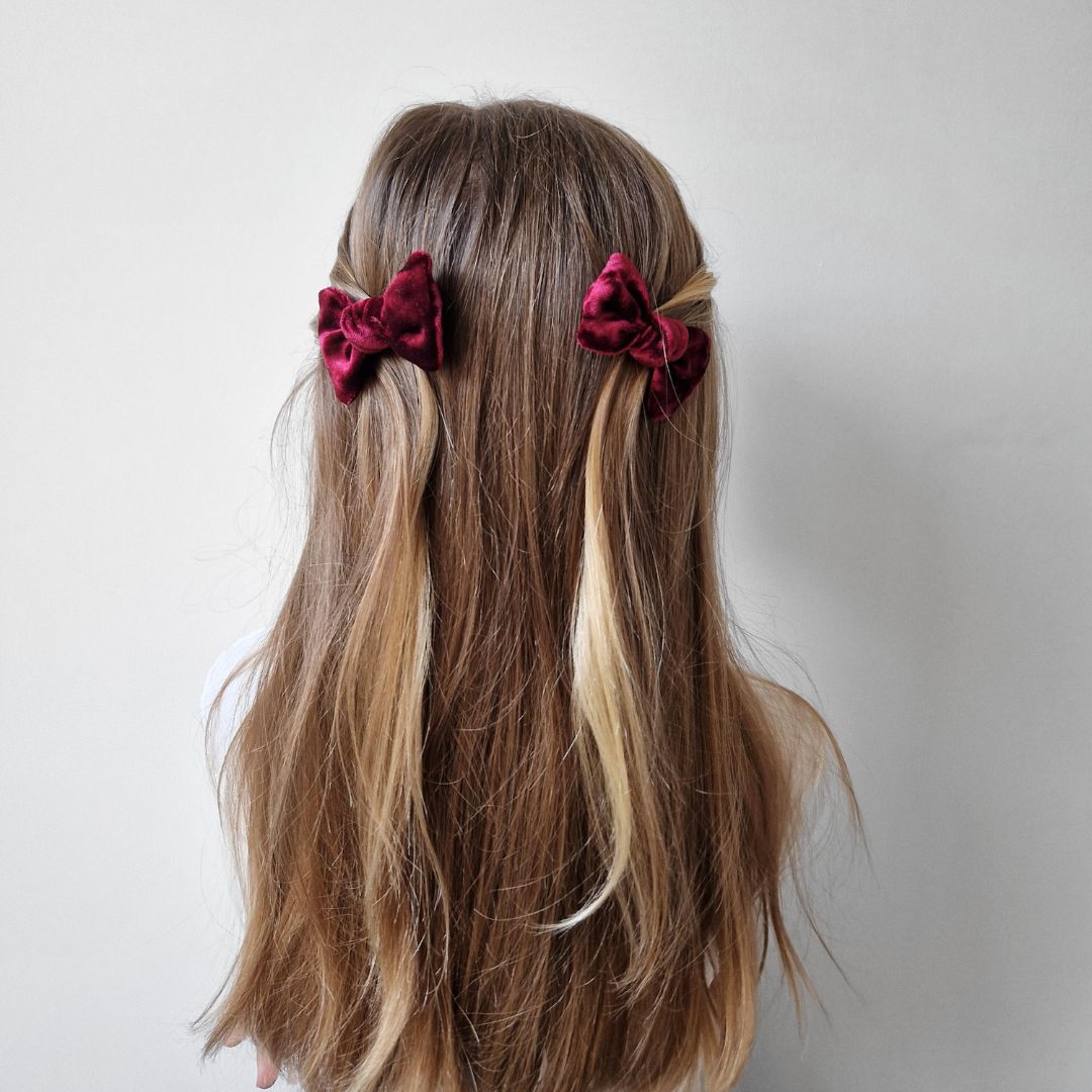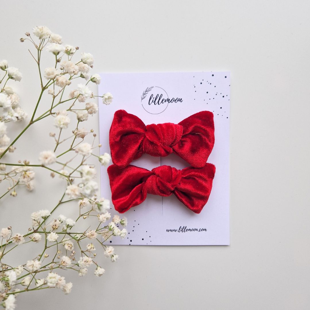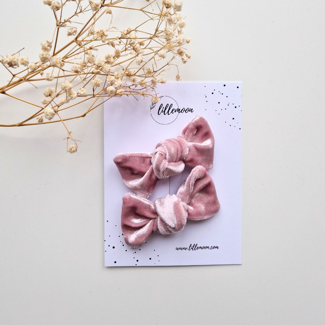 Mini samta trikotāžas bantīšu komplektiņi. Bantīte iespraužas matos ar 'krokodilīša' sprādzīti.