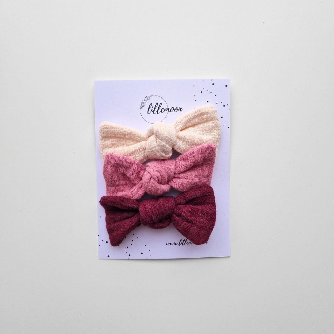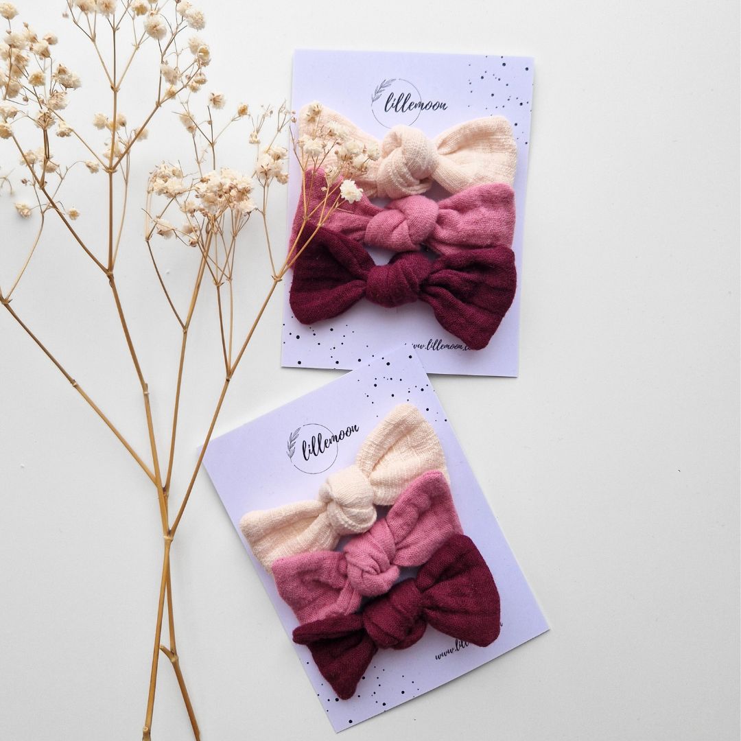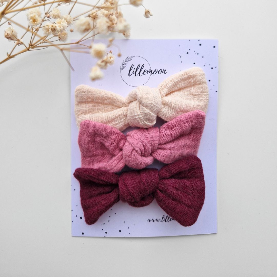 Muslina matu sprādzīšu komplekts meitenēm – 3 maigas bantītes