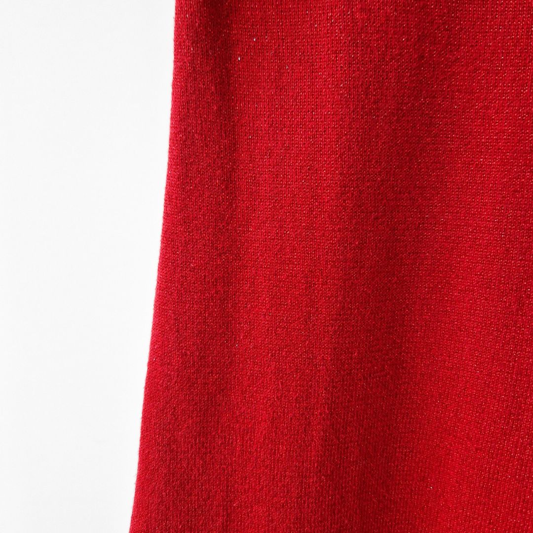 Skaista svētku kleitiņa sarkanā krāsā ar mirdzuma pavedieniem un maigu bantīti pie kakla izgriezuma. Ērta adījuma tekstūra nodrošina kustību brīvību, bet svinīgā krāsa padara to ideāli piemērotu Ziemassvētkiem, ballītēm vai ģimenes svētkiem.