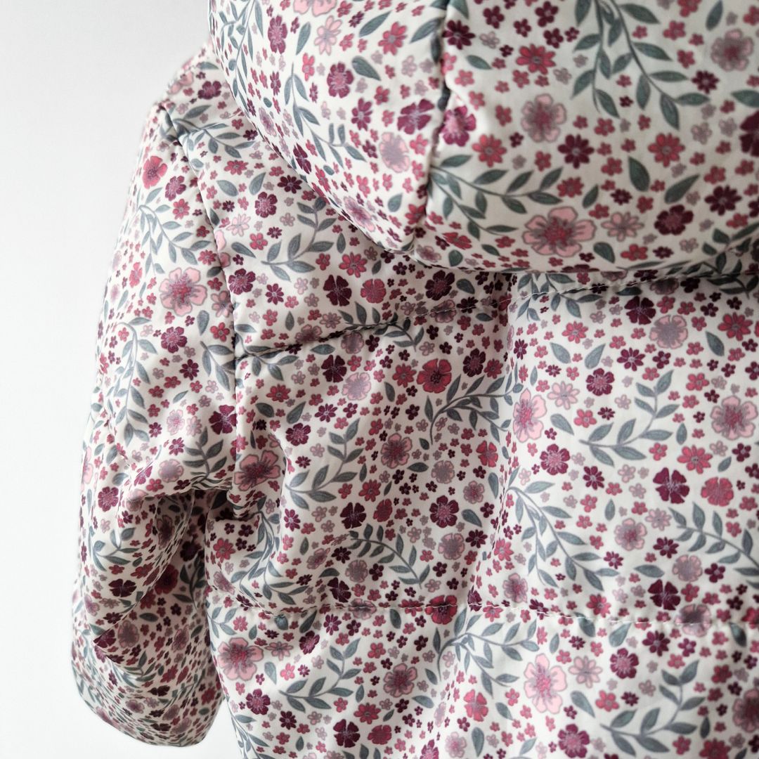Ērta, silta un ļoti mīksta — ideāla pastaigām vai pirmajiem ziemas, rudens vai pavasara piedzīvojumiem. Ziedu raksts maigās rozā un zaļās krāsās piešķir virsjakai siltu, rotaļīgu noskaņu. Modelis ar kapuci, vieglu pildījumu un praktisku rāvējslēdzēju — tieši tas, kas mazajam nepieciešams ikdienā.