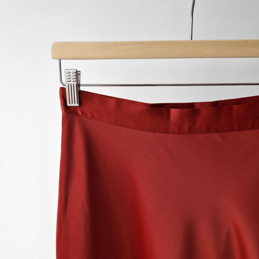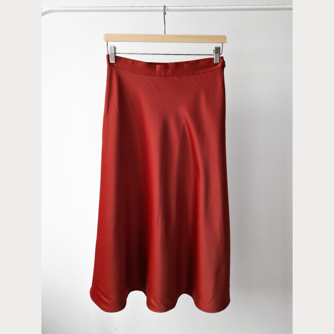 Pre-Loved Satīna Midi Svārki – Silti oranžā krāsā I 38 izm.