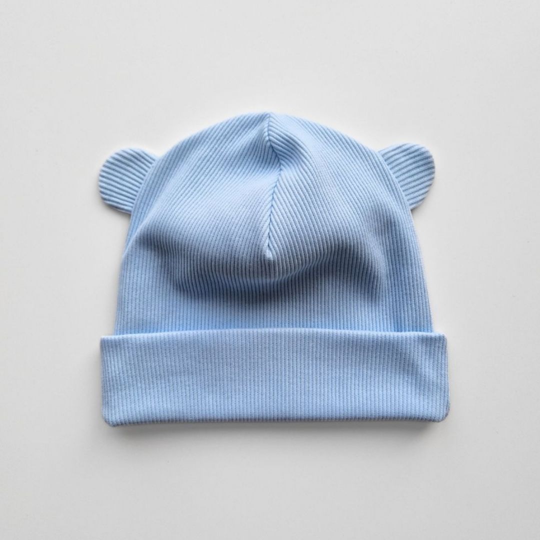 Rievotās trikotāžas cepure ar austiņām - maigi zila