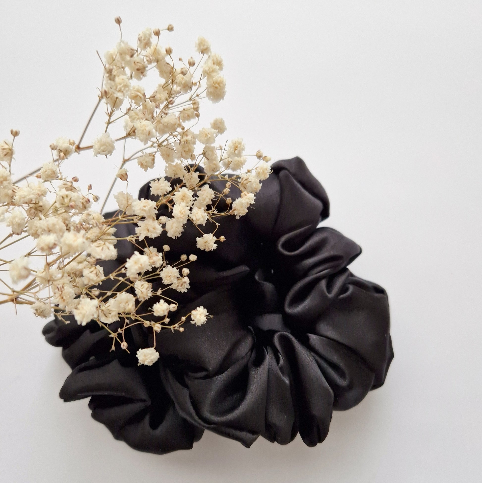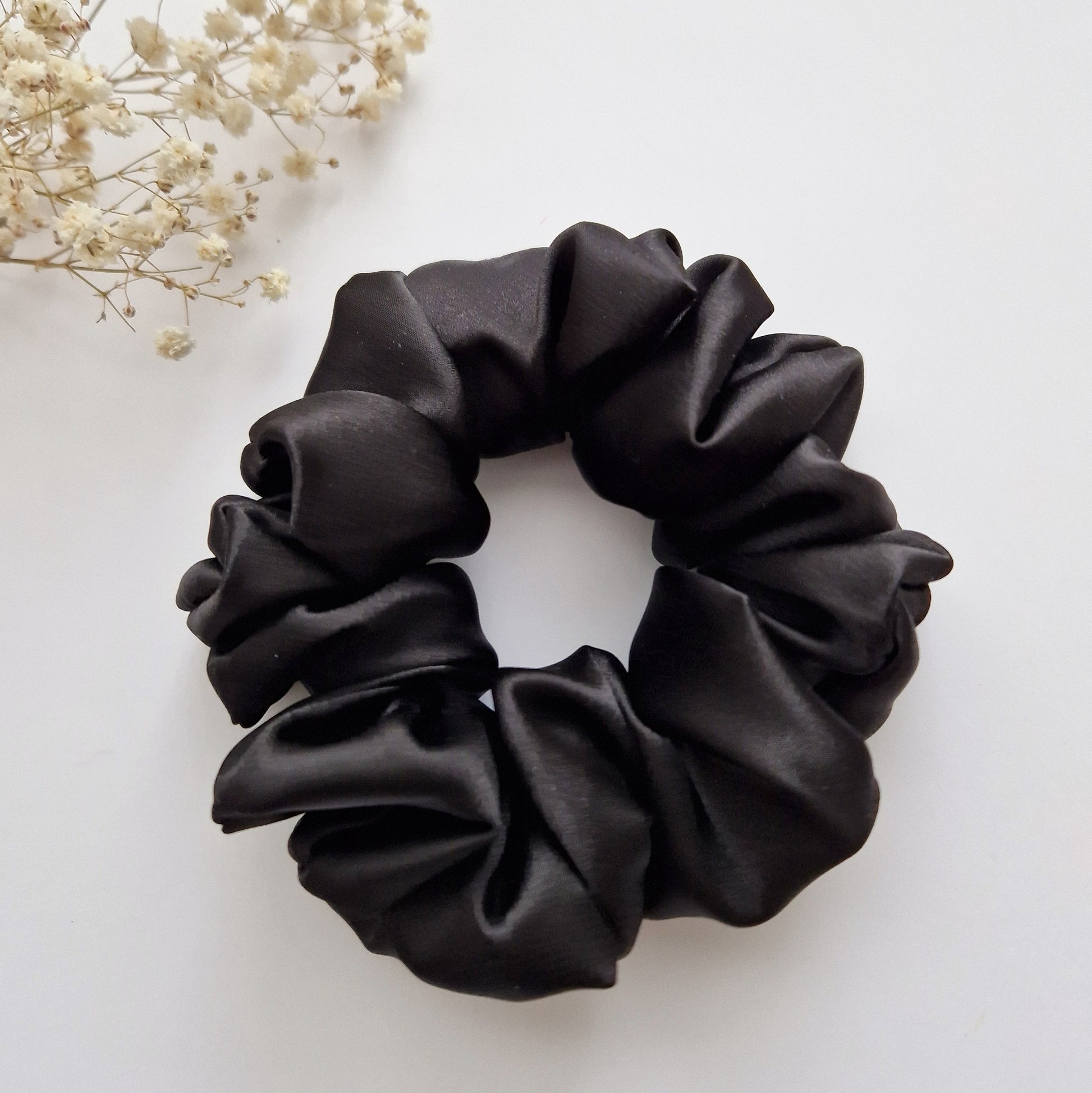 Eleganta un matiem saudzīga satīna matu gumija melnā krāsā.