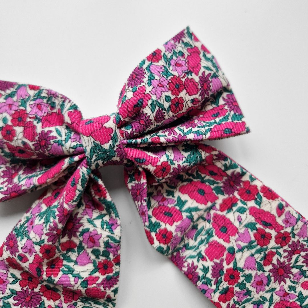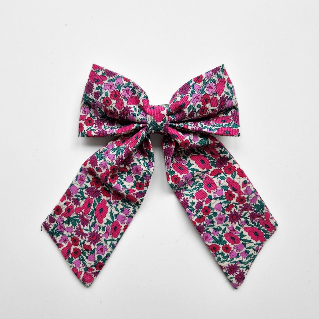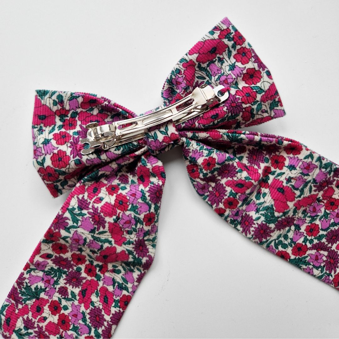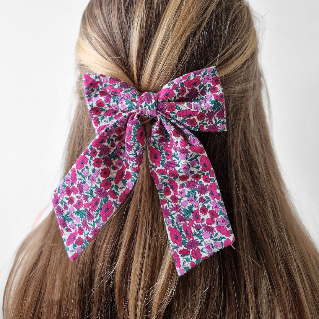 Smalka un sievišķīga ziedu velveta matu bante ar sprādzes aizdari – lieliski piestāvēs gan mazām meitenēm, gan pieaugušām dāmām. Šūta no neliela auduma gabaliņa, tā iemieso Lillemoon ilgtspējības vērtības, piešķirot skaistiem materiāliem jaunu dzīvi.