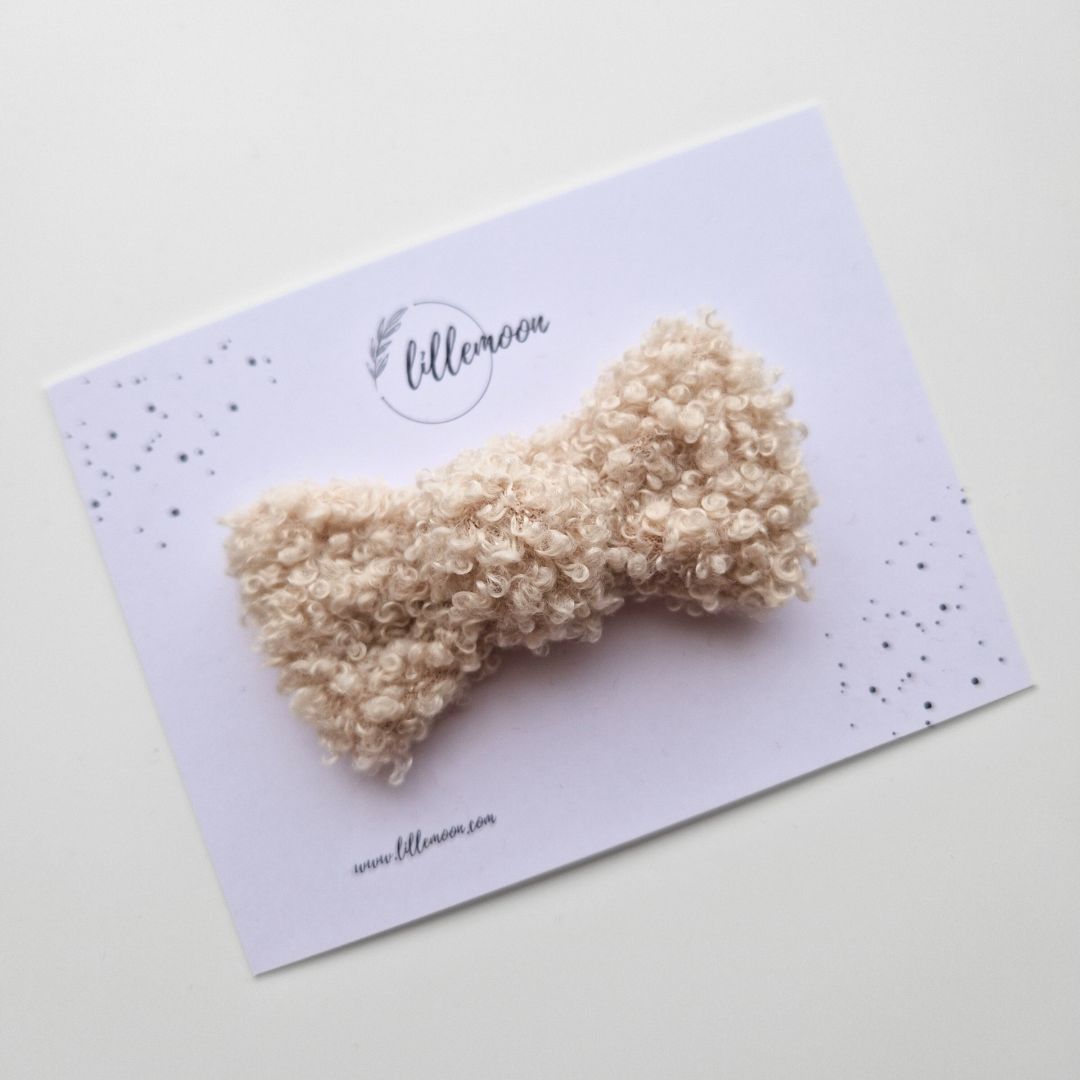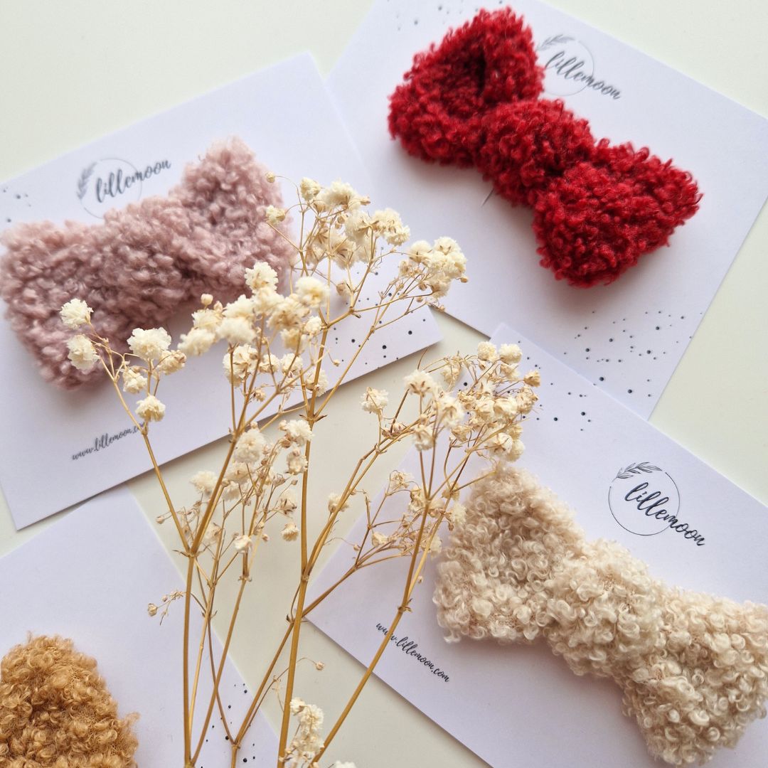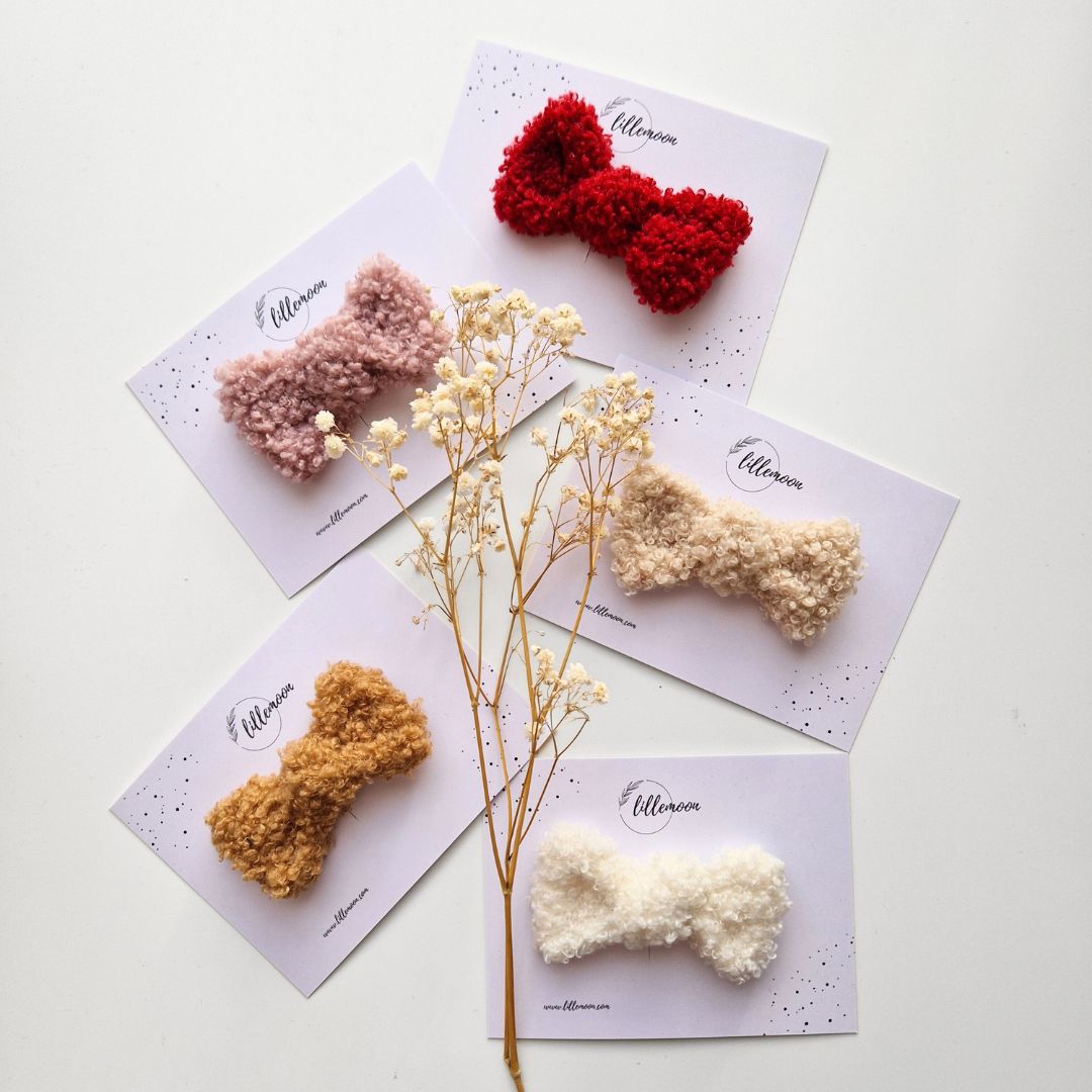 Mīkstais “teddy” audums piešķir frizūrai siltu, ziemīgu noskaņu, padarot šīs bantītes par lielisku izvēli svētkiem, ikdienai, fotosesijām, Ziemassvētkiem un kā mīļu dāvanu raudzībās